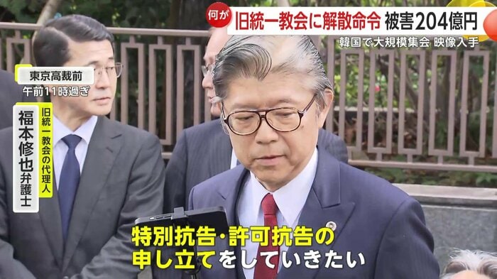 決定を受け、旧統一教会の代理人・福本修也弁護士は「法治国家じゃないという感想につきる。特別抗告・許可抗告の申し立てをしていきたい」と不満をあらわにした。