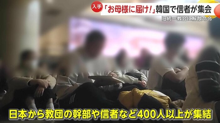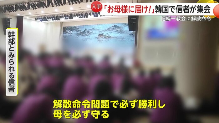 一方、解散命令の決定が出る前の1月下旬、韓国・ソウル近郊の教団本部では多数の信者が集まり「皆さん、大声で叫んでください!お母さまに届け~ヒョジュンの声!」と結束を呼びかけていた。