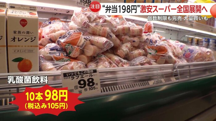 激安商品はまだまだある。10本入りの乳酸菌飲料は、税抜き98円(税込み105円)だ。