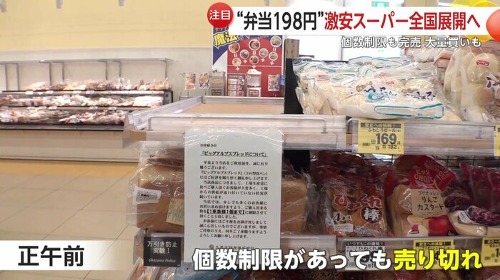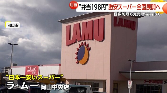 取材班が向かったのは、日本一安いスーパーと豪語する岡山県にある「ラ・ムー」。西日本を中心に160店以上を展開している。
