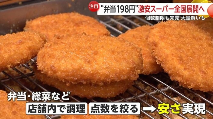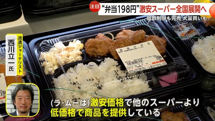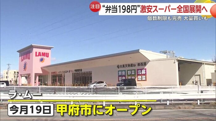 看板商品は「198円弁当」や「99円ナポリタン」。岡山県を拠点に西日本で160店舗以上を展開する激安スーパー「ラ・ムー」が全国展開を本格化させている。驚異的な低価格が武器だ。