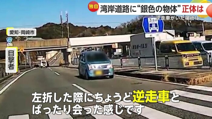 東京の湾岸道路で、落ちていた“銀色の物体”に車が乗り上げる瞬間がカメラに捉えられた。愛知では、交差点を曲がった先で逆走車とバッタリ対面する事態も。相手の運転手は70代くらいに見えたという。