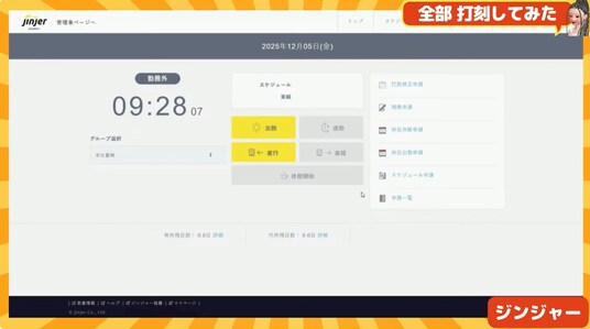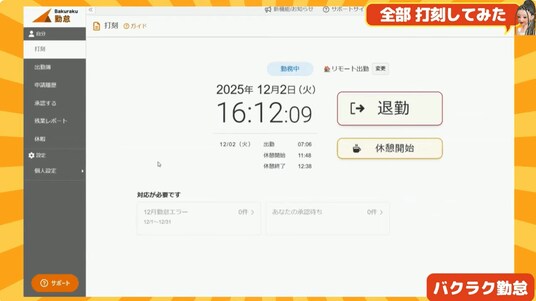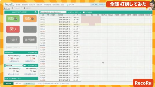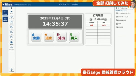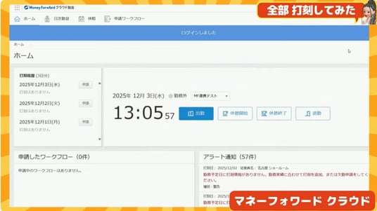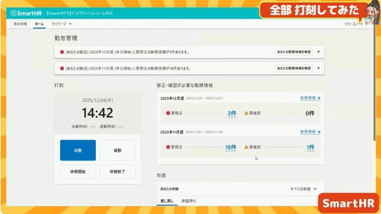 実際にログインし、出勤・休憩・退勤の打刻~修正申請までを体験。