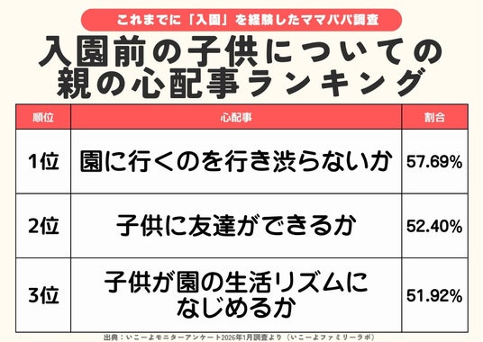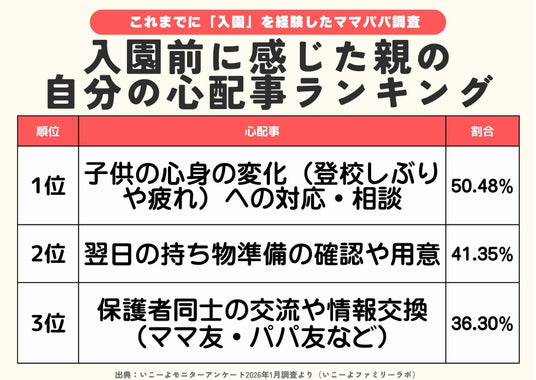 入園は子どもにとっても保護者にとっても大きな節目です。不安を抱えながらも、それぞれの家庭なりの方法で準備を進めているリアルな姿が浮き彫りとなりました。