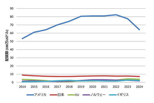 グラント投資の国別動向が図2です。