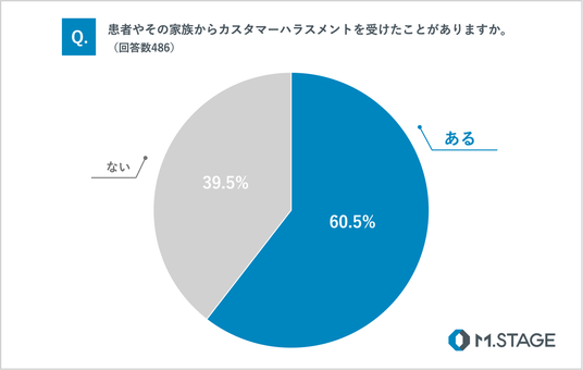 医療人材総合サービス、事業場向け産業保健支援を提供する株式会社エムステージ(東京都品川区、代表取締役:杉田雄二)は、エムステージが運営する『Dr.転職なび』『Dr.アルなび』の登録医師のうち486名に「カスタマーハラスメント」に関するアンケート調査を実施しました。