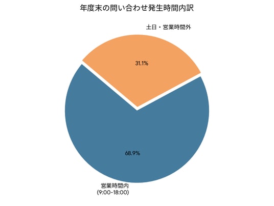 年度末の問い合わせの31.1%が、土日または営業時間外(9:00~18:00以外)に発生しました。