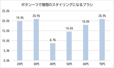 「ボタン一つで理想のスタイリングになるブラシ」は、20代・30代に加え、60代・70代でも一定の割合が見られ、世代を問わず、「理想的なスタイリングを楽しみたい」「スタイリングの手間を省きたい」といったヘアスタイルへの意識が背景にあるのかもしれません。