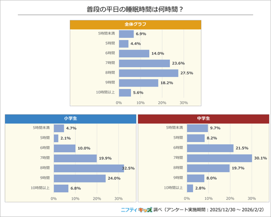 ニフティ株式会社(本社:東京都新宿区、代表取締役社長:前島 一就、以下、当社)は、当社が運営する子ども向けサイト「ニフティキッズ」にて、「睡眠」に関するアンケート調査を実施し、本日3月5日(木)にその結果をまとめたレポートを公開しました。