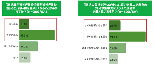 60.3%が「選択肢や情報が多すぎると買い物を避けたくなる」と回答。また65.0%が