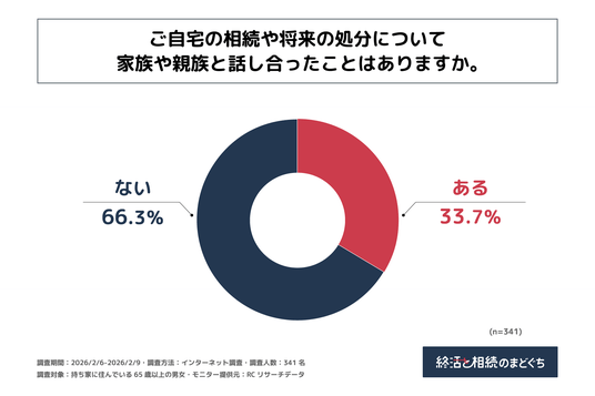 持ち家に住んでいる65歳以上の男女の約3人に2人が、自宅の相続や将来の処分について家族や親族と話し合ったことがないと回答!株式会社終活のまどぐちが「高齢者の持ち家の将来に関する調査」を実施!