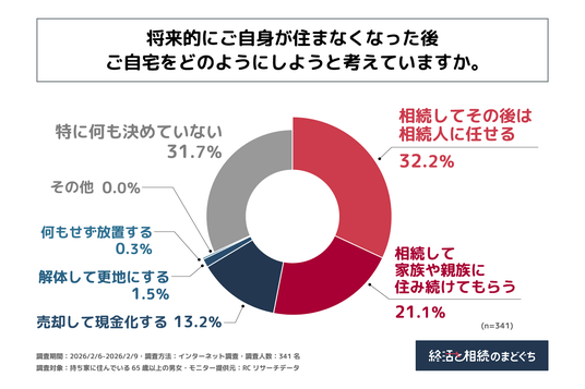 持ち家に住んでいる65歳以上の男女の6割以上が、将来的に自身が住まなくなった後の自宅について、その具体的な扱いは現段階で定まっていない