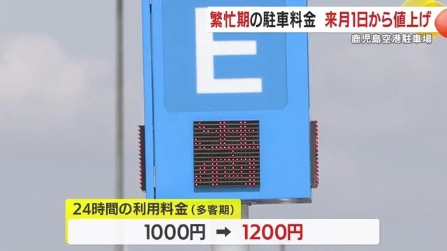 (動画で見る▶鹿児島空港「繁忙期の駐車料金を1000円→1200円に」4月1日開始、GWの混雑緩和が狙い)
