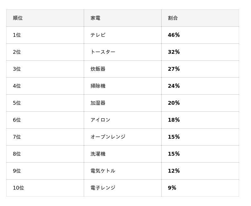 “持たない家電”ランキング──最初に買わなかった家電は?
