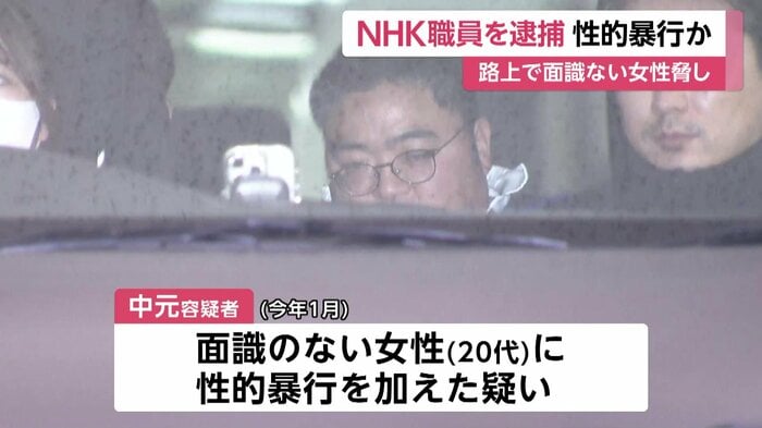 NHKのチーフディレクター、中元健介容疑者は1月、東京・渋谷区で、面識のない20代の女性に性的暴行を加えた疑いがもたれている。