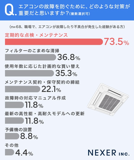 ■73.5%が、故障対策として「定期的な点検・メンテナンス」が重要と回答