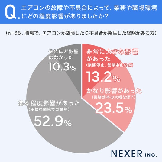 続いて、エアコンの故障を経験した方に、業務や職場環境へどの程度影響が出たかを聞いてみました。