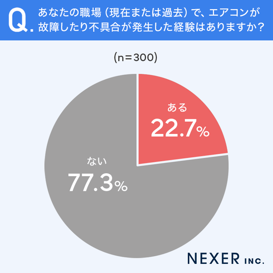 ■22.7%が、職場でエアコンの故障・不具合を「経験したことがある」と回答