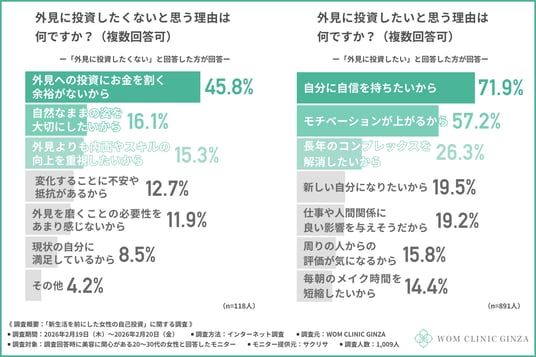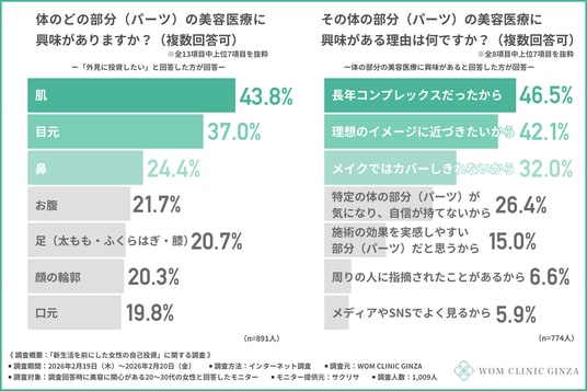そこで今回、WOM CLINIC GINZA(https://wom-clinic.com/)は、美容に関心がある20~30代の女性を対象に、「新生活を前にした女性の自己投資」に関する調査を行いました。