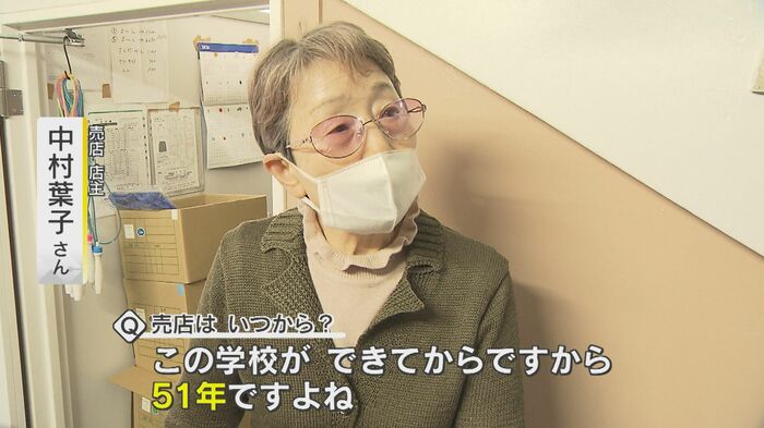 この売店の店主は85歳の中村葉子さん。「(いつから?)この学校ができてからですから、51年ですよね」と笑う。