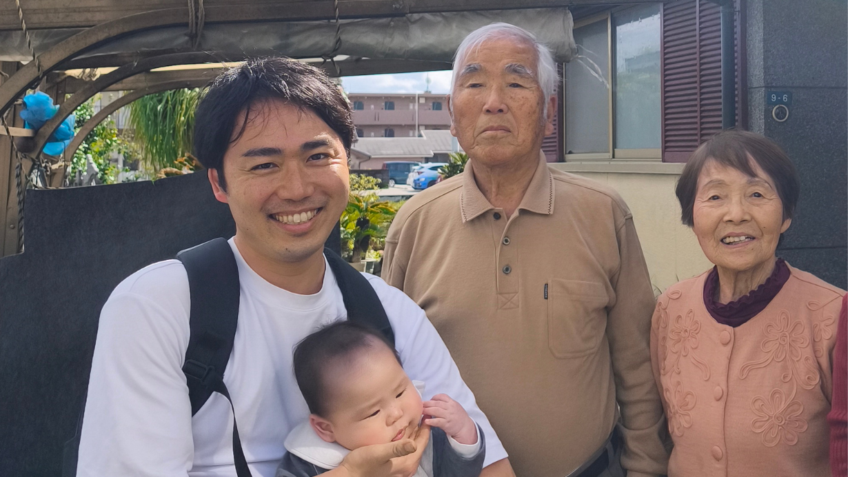 ひ孫との初対面時に祖父母と取った写真