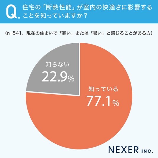 ■77.1%が、断熱性能が室内の快適さに影響することを「知っている」と回答
