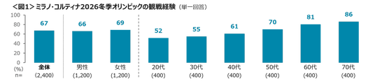 ミラノ・コルティナ2026冬季オリンピックの観戦経験は67%で、60~70代は8割超えた。<図1>