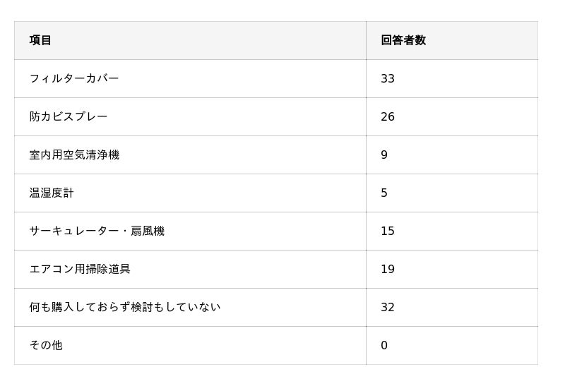 エアコンクリーニング後に購入したものに関するアンケート調査の概要