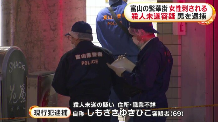 警察は、その場にいた住所・職業不詳、自称・しもざきゆきひこ容疑者(69)を殺人未遂の疑いで現行犯逮捕した。