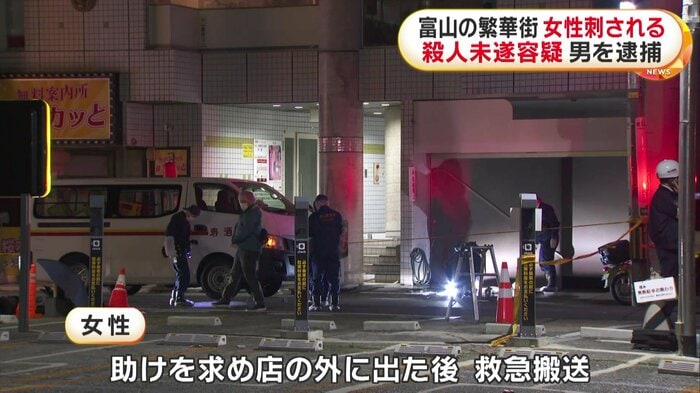 富山駅前の繁華街で6日夕方、女性が包丁で腹などを数回刺される事件があった。