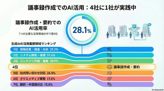 1.「議事録作成・要約」でのAI活用率は28.1%--約4社に1社が実践中