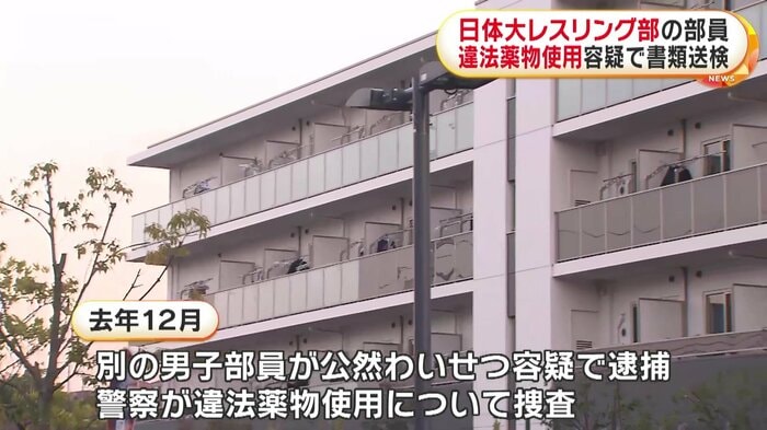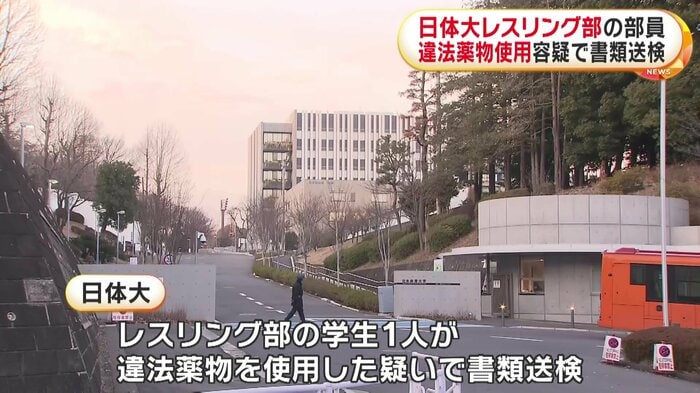 日体大のレスリング部員が違法薬物を使用した疑いで書類送検された。