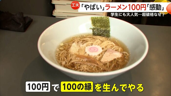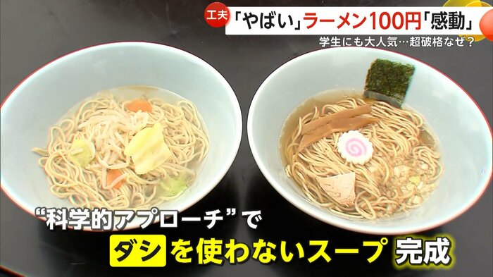 昔ながらの醤油ラーメンを1杯100円という驚異的な価格で提供する、東京・八王子市の「100圓ラーメン」が話題を呼んでいる。店主は科学的知識を生かしてオリジナルスープを開発したという。