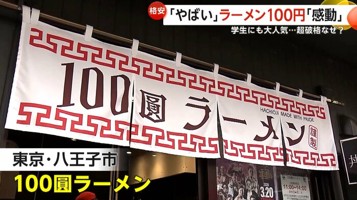 高校生たちがハイテンションで食べているのは、1杯たったの100円という超格安ラーメンだ。