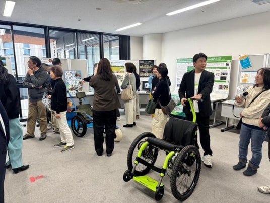 当日は、好日山荘や和歌山大学をはじめ、関連する各事業者・団体によるパネル展示も行われました。会場には、掲示されたポスターや特別仕様の車椅子などの展示品に足を止めて見入る参加者の姿が多く見られました。