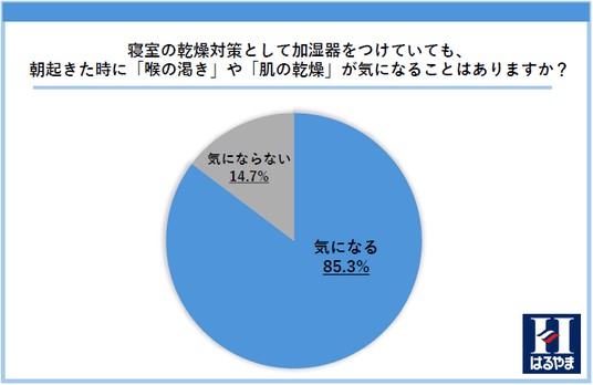 ・加湿器を使用している層の85.3%が、朝起きた時の喉や肌の乾燥を気にしています。