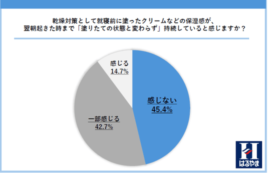 ビジネスパーソンの健康を応援・サポートする、はるやま商事株式会社(本社:岡山県岡山市、代表取締役会長兼社長:治山正史)は、男女300人を対象に「就寝中の乾燥に関する意識調査」を実施しました(※)。その結果、加湿器やボディクリーム等で対策をしていても、朝には依然として乾燥を感じている「夜の空白時間」の実態が浮き彫りとなりました。