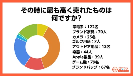 引っ越し時に売却して最も高く売れたものについて尋ねたところ、「家電系」(122票)が最も多い結果となりました。