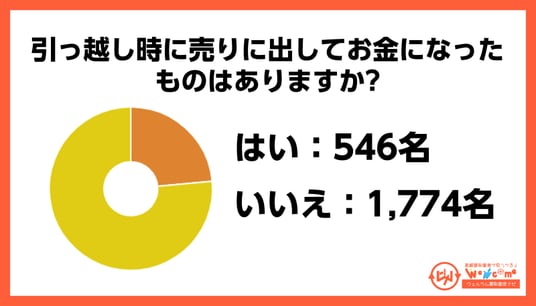 引っ越しの際に「不要になったものを売却してお金になった経験があるか」を尋ねたところ、「はい」と回答した人は546名となりました。
