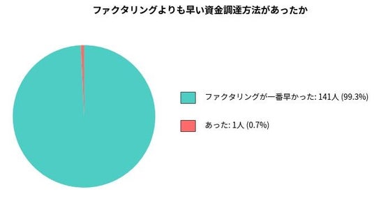なお、「ファクタリングよりも早い方法があった」と回答した1名は消費者金融の事業者向けローンが早かったと回答しています。
