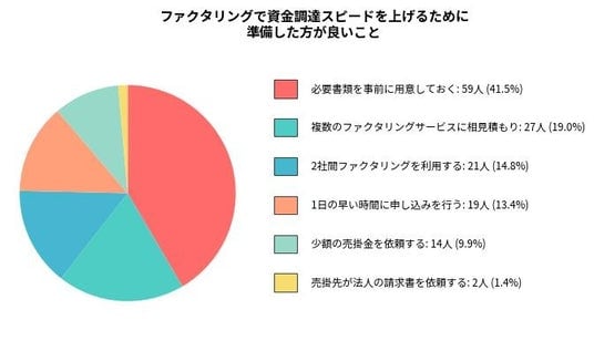 スピード感のあるファクタリングを実現するための準備として、半数近くの方が「事前に書類を用意しておくと良い」と回答しました。