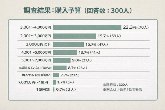 ・購入予算は3,001~4,000万円が最多で23.3%(70人)