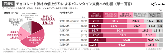 図表6 チョコレート価格の値上がりによるバレンタイン支出への影響(単一回答)