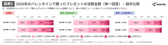 図表5 2026年のバレンタインで贈ったプレゼントの消費金額(単一回答):経年比較