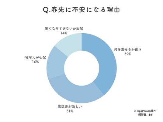 「何を着せるか迷う」(39%)、次いで「気温差が激しい」(31%)という回答でした。
