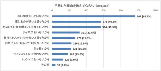 ・不要品を手放した理由は「長い間使用していないから」が68.3%で1位(↑0.5pt)