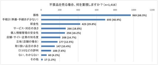・不要品を売る場合に重視していることは「価格」が68.3%で1位(↑4.4pt)