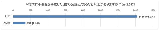 ・今までに不要品を手放したことがある人は91.1%(↑0.8pt)