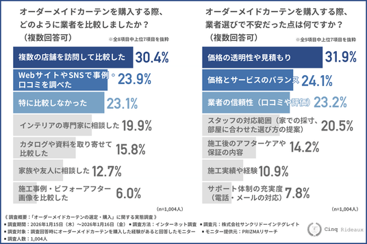 そこで今回、サンクリドー(https://www.mobiria-nakajima.com/)は、オーダーメイドカーテンを購入した経験がある方を対象に、「オーダーメイドカーテンの選定・購入」に関する実態調査を行いました。