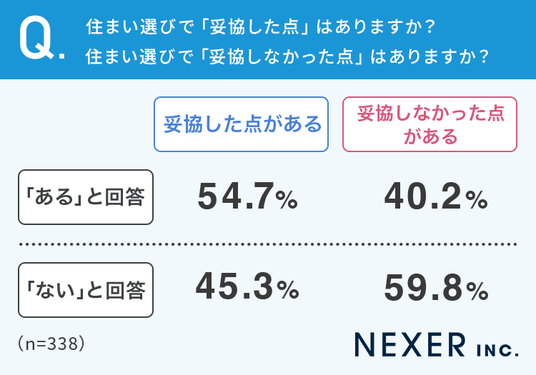 ・半数以上(54.7%)が住まい選びで何らかの妥協をしている